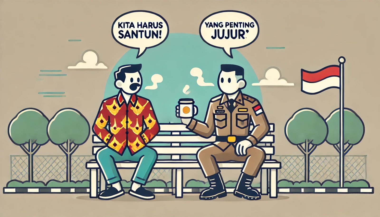 Percakapan ini hanyalah fiksi. Namun substansinya mengajak kita merenung. Antara kesantunan dan kejujuran, antara etika dan keberanian berkata benar – di sanalah dilema kepemimpinan diuji. Rakyat Indonesia layak mendapatkan pemimpin yang tidak hanya tampil santun di depan kamera, tetapi juga jujur, konsisten, dan bijak dalam tindakan (Atur Lorielcide / TokohIndonesia.com)