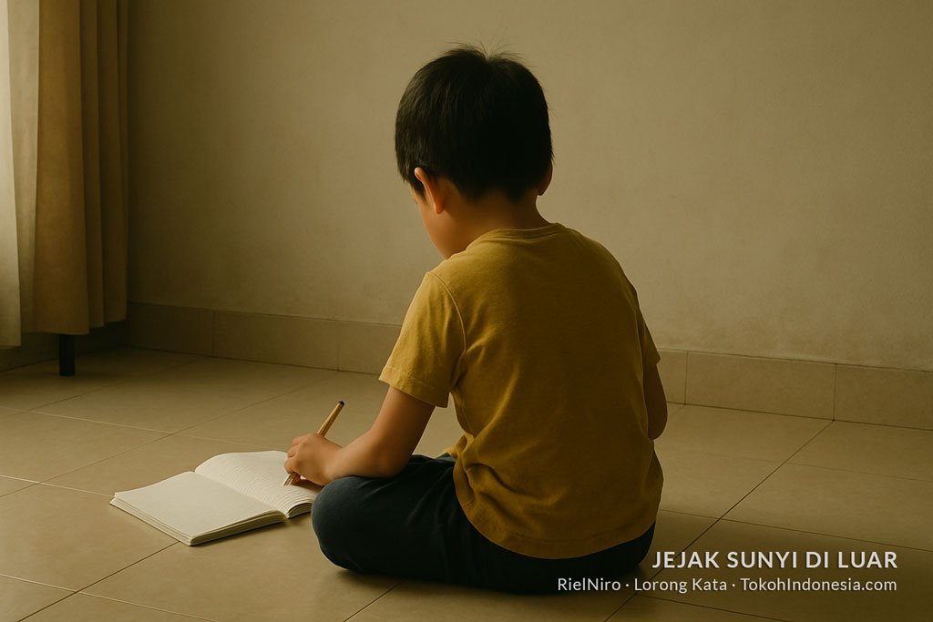 Di sebuah sudut ruangan, seorang anak duduk di lantai dengan buku terbuka. Tidak ada kamera, tidak ada orang yang memintanya “ayo semangat”. Hanya halaman yang bergeser pelan dan keheningan kecil yang menjadi saksi.