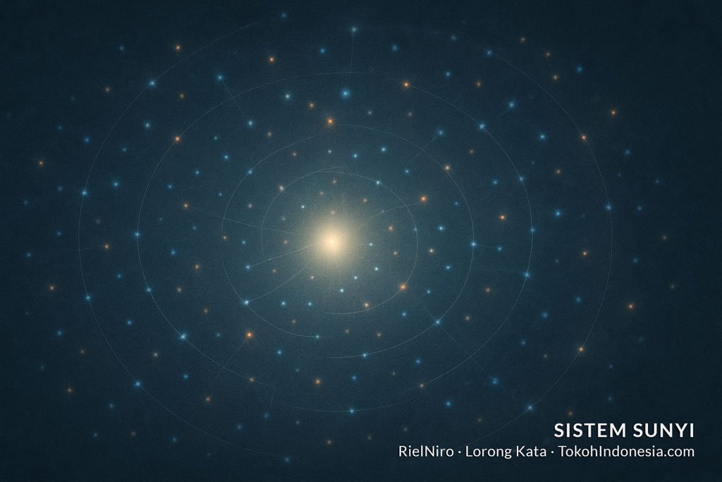 Istilah-istilah dalam Sistem Sunyi tidak berdiri sendiri. Setiap kata di sini adalah pintu menuju pengalaman batin: tentang bagaimana rasa berubah menjadi makna, dan bagaimana makna akhirnya menuntun pada iman. Empat orbit: Psikospiritual (Inti), Relasional (Tengah), Eksistensial-Kreatif (Luar), dan Metafisik-Naratif (Kosmik), hanyalah lintasan. Yang menjaga agar semuanya tetap berputar adalah gravitasi iman di pusat kesadaran.