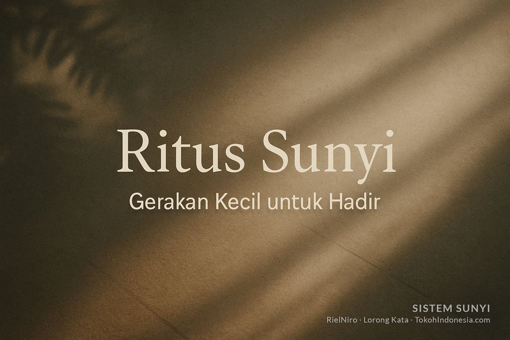 Tulisan ini termasuk dalam Ritus Sunyi: penanda kecil tentang gerakan sederhana untuk memasuki hadir. Ia bukan bagian dari rangkaian pemikiran Sistem Sunyi, melainkan pintu tenang yang membantu pembaca kembali pada napas, pada tubuh, dan pada sunyi yang bekerja di dalam diri.
