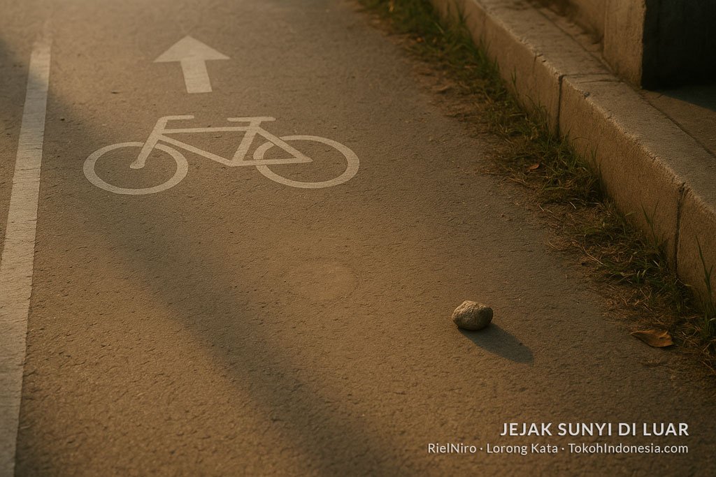 Jalur sepeda biasanya dilalui cepat: orang mengejar waktu, mengatur napas, menikmati udara pagi. Pengguna jalan bergerak dalam fokusnya masing-masing. Batu kecil itu bisa saja dibiarkan, toh tidak setiap hari ada orang yang melintas dengan ban tipis atau kecepatan tinggi.