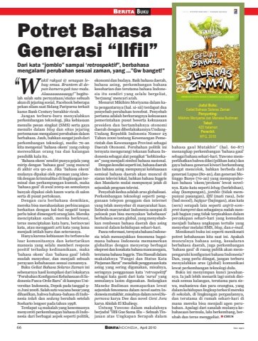 66 BERITAINDONESIA, April 2010BERITA BUKUfoto: reproPotret BahasaGenerasi “Ilfil”Dari kata “jomblo” sampai ‘retrospektif”, berbahasamengalami perubahan sesuai zaman, yang …”Gw banget!”akil rakyat @ senayan lebay smua. Brantem di depan kamera gak taw malu.Alaaaaaaaaaayy!” begitulah salah satu pernyataan/status sebuahakun di jejaring sosial, Facebook beberapapekan silam saat Sidang Paripurna terkaitkasus Bank Century berakhir ricuh.Jangan terburu-buru menyalahkanperkembangan teknologi, jika kebiasaanmenulis pesan singkat (SMS) serta gayamenulis dalam blog dan situs jejaringpertemanan mengalami perubahan dalamberbahasa. Jauh, bahkan sangat jauh dariperkembangan teknologi, medio 70-ankita mengenal ‘bahasa okem’ yang cukupmeresahkan orang tua dan kalanganpendidik kala itu.‘Bahasa okem’ sendiri punya gejala yangmirip dengan ‘bahasa gaul’ yang munculdi akhir era 90-an. Jika ‘bahasa okem’mulanya dipakai oleh preman yang identik dengan kriminalitas di lingkungan terminal dan perkampungan kumuh, maka‘bahasa gaul’ di awal 2009-an semulanyabanyak dipakai oleh kaum waria di salonserta di pusat pertokoan.Dengan cara berbahasa demikian,mereka bisa merahasiakan perbincanganberkaitan dengan hal-hal negatif tanpaperlu takut dimengerti orang lain. Merekamenciptakan sandi, mereka berkreasi,terus menciptakan kata baru, berinovasikata, atau mengganti arti kata yang lamamenjadi istilah baru dan seterusnya.Hanya karena kebiasaan itu terbawa keluar komunitasnya dan ketertarikanmanusia yang selalu memberi responspositif terhadap kedinamikaan, maka‘bahasa okem’ dan ‘bahasa gaul’ lebihmudah menyebar, dan menjadi sebuahperayaan kebahasaan sesuai zamannya.Buku Geliat Bahasa Selaras Zaman inisebenarnya hasil kompilasi dari lokakarya“Perubahan Konfigurasi Kebahasaan di Indonesia Pasca-Orde Baru” di kampus Universitas Indonesia, Depok pada tanggal 9-11 Juni 2008. Salah satu wacana besar yangdihasilkan, bahwa bahasa-bahasa di Indonesia telah dan sedang berubah setelahSoeharto lengser pada tahun 1998.Terdapat 14 makalah yang kesemuanyamenyoroti perkembangan bahasa di Indonesia dari berbagai aspek seperti politik,ekonomi dan budaya. Baik bahasa daerah,bahasa asing, perkembangan bahasakeseharian dan terutama bahasa Indonesia itu sendiri yang selalu bergeliat,‘berjuang’ mencari arah.Menurut Mikihiro Moriyama dalam kata pengantarnya (hal. xi-xii) terdapat duapenyebab perubahan tersebut. Penyebabpertama adalah berkurangnya kekuasaanpemerintahan pusat beserta kekuasaanpresiden dan bertambahnya otonomidaerah dengan diberlakukannya UndangUndang Republik Indonesia Nomor 25Tahun 2000 tentang Kewenangan Pemerintah dan Kewenangan Provinsi sebagaiDaerah Otonomi. Perubahan politik initernyata mengurangi tekanan bahasa Indonesia sebagai alat pengikat “kebhinekaan” yang menjadi simbol bahasa nasional.Dengan kondisi seperti ini, bahasa daerahdan bahasa asing mempunyai keleluasaansemisal bahasa daerah akan muncul disiaran televisi lokal, bahkan bahasa Inggrisdan Mandarin mulai mempunyai jatah disejumlah program televisi.Penyebab kedua adalah arus globalisasi.Perkembangan teknologi seperti penggunaan telepon genggam dan internetyang telah menyebar di masyarakat luas.Seluruh masyarakat Indonesia sampai dipelosok pun bisa merayakan ‘kebebasan’berbahasa secara global, yang menyebabkan rembesan bahasa daerah dan asingmuncul dalam kehidupan sehari-hari.Pasca reformasi, ternyata bahasa Indonesia telah menunjukkan fenomena bagaimana bahasa Indonesia memamerkanglobalitas dengan menyerap berbagaiekspresi dan kosakata bahasa mancanegara,terutama bahasa Inggris. Tim Hassall dalammakalahnya “Fungsi dan Status KataPinjaman Barat” menelisik penggunaan kataasing yang sering digunakan, misalnya,seringnya penggunaan kata ‘retrospektif’sebagai kata ganti dari kata ‘surut’ yangsemulanya lazim digunakan. SedangkanManeke Budiman memaparkan lewatsejumlah fenomena dalam novel sastra Indonesia mutakhir, misalnya dalam novel Supernova karya Dee dan novel Geni Jorakarya Abidah El Khalieqy.Untung Yuwono dalam makalahnyaberjudul “Ilfil Gue Sama Elu – Sebuah Tinjauan atas Ungkapan Serapah dalambahasa gaul Mutakhir” (hal. 60-87)menangkap perkembangan ‘bahasa gaul’sebagai bahasa sehari-hari. Yuwono memperlihatkan bahwa diksi (pilihan kata) dangaya bahasa generasi kiwari berkembangsangat mencolok, bahkan berbeda darigenerasi Lupus (80-an), dan generasi Motinggo Busye (70-an) yang mempopulerkan bahasa ‘okem/prokem’ lewat novelnya. Kata-kata seperti lebay (berlebihan),alay (kampungan), jomblo (tidak mempunyai pasangan), ilfil (mati rasa), bete(bad mood), bajigur (bajingan), atau kata(seru) serapah lain seperti anjrit-sompret-kampret dan sebagainya sudah menjadi bagian yang tidak terpisahkan dalampercakapan sehari-hari yang kemudianmenjadi bahasa ungkapan tertulis yangmenyebar melalui SMS, blog, dan e-mail.Menikmati buku ini seperti menikmatipotret kebahasaan kita saat ini. Apakahmunculnya bahasa asing, kesadaranberbahasa daerah, juga perkembangan‘bahasa gaul’ di ruang publik akan mempengaruhi konfigurasi bahasa Indonesia?Dan, yang perlu diingat, jangan terburumenyalahkan arus (global) komunikasilewat perkembangan teknologi dulu.Buku ini menyimpan kunci jawabannya. Ia jadi lebih menarik lagi untuk disimak semua kalangan, terutama para siswa, mahasiswa dan para orangtua, yangdalam kehidupan lingkup terkecil merekadi sekolah, di lingkungan pergaulannya,dan terutama di rumah sehari-hari dimana mereka bisa menjadi agen perubahan. Apalagi dari sanalah mulanya kebahasaan bermula, lalu berkembang, berubah dan terus menggeliat. CHUS“WJudul Buku:Geliat Bahasa Selaras ZamanPenyunting:Mikihiro Moriyama dan Maneke BudimanTebal:423 halamanPenerbit:KPG, 2010